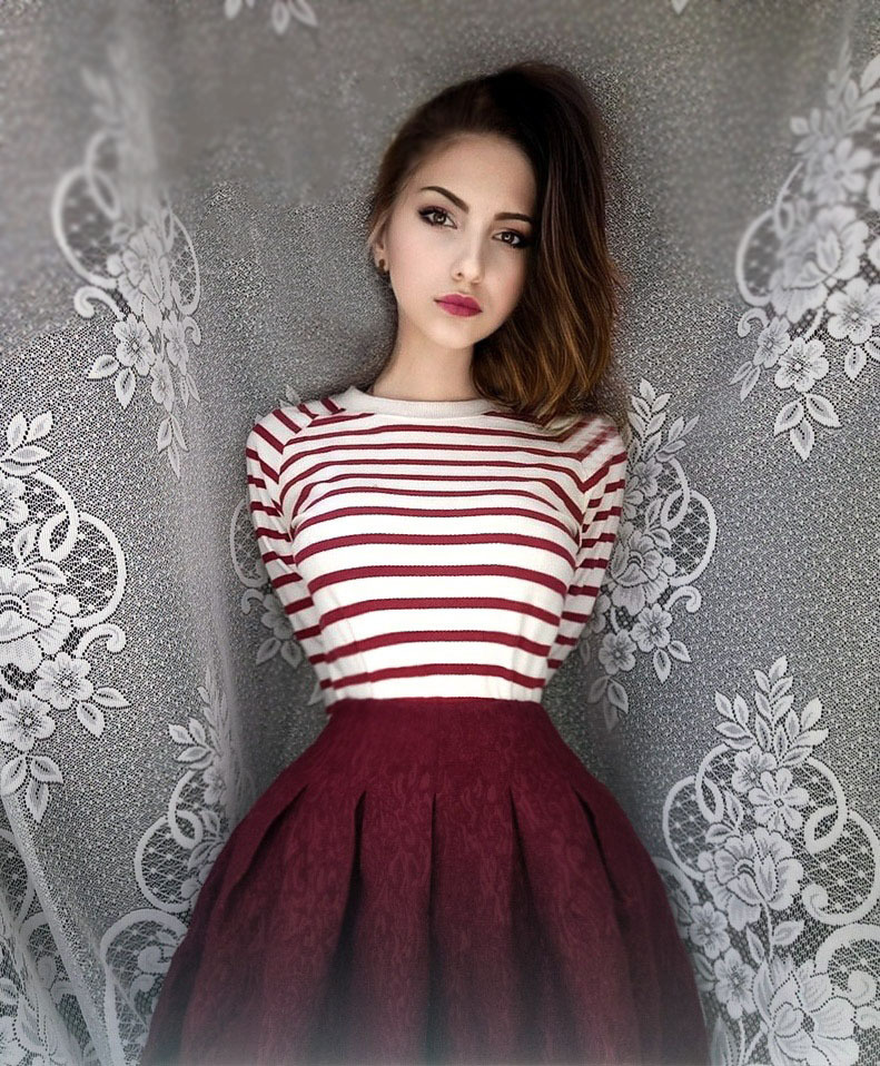 “Соблазнительная искусительница с взглядом, в котором играют эмоции. Её грация вызывает желание приблизиться — она не играет — она чувствует. Катя вдохновляется искренностью и дарит эмоции, которые не повторяются.”